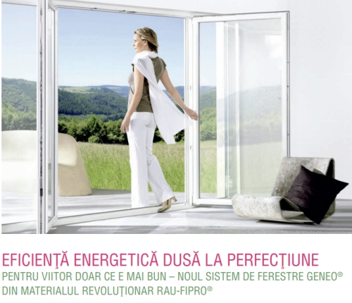 GENEO® este din punct de vedere energetic cel mai bun sistem de profile pentru ferestre cu adancimea de 86 mm care exista in acest moment pe piata de constructii. Particularitatea sistemelor GENEO®, este materialul hightech RAU-FIPRO®. Acest material compozit din fibre de sticla confera acestor termopane Rehau o stabilitate deosebita. Prin aceasta tehnica, armaturile de otel nemaifiind necesare, se asigura o reducere a costurilor cu 90%. in acest fel, GENEO® asigura cele mai bune valori de izolatie termica, eliminandu-se puntile termice cauzate de utilizarea armaturilor de otel. Chiar si normativele tehnice pentru conservarea energiei (EnEV), sunt realizate peste cerinte cu GENEO®. in acelasi timp, sistemul de ferestre ofera premisele pentru design si confort, fara a fi nevoie de solutii de compromis.